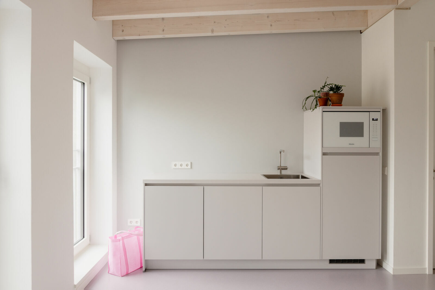 Das ehemalige Wohnhaus aus der Gründerzeit wurde bereits 2010 im Zuge der Hostel-Kapazitätserweiterung hinsichtlich Brand-, Schall- und Wärmeschutz komplett saniert und erhält ein neues Äußeres durch die kürzliche Dachaufstockung, wobei der ursprüngliche Charakter des Attikadaches erhalten bleibt. Aus dem ehemaligen Empfangsbereich entstehen zwei kleinere Büroeinheiten inklusive Eingangsfoyer. Der zentrale Eingang, das vorhandene Treppenhaus und der Aufzug werden weiterhin als Haupterschließung des Gebäudes genutzt.