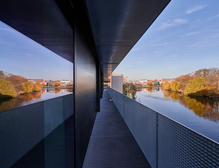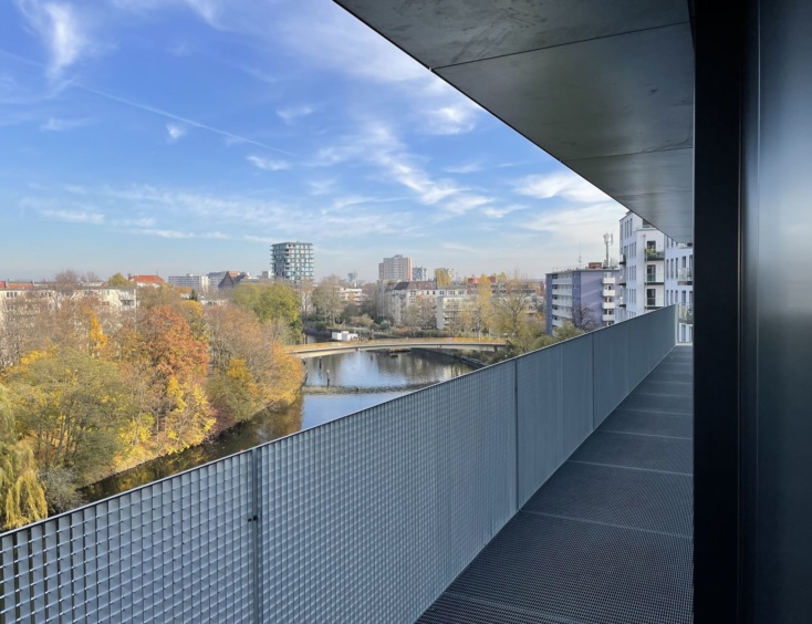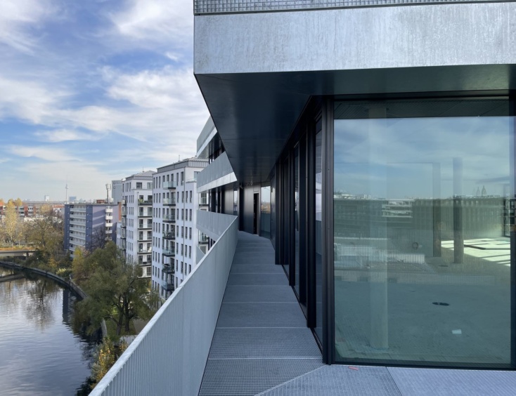 The Terrace verspricht jedem Nutzer nahezu an jeder Stelle eines Büros den Austritt auf die umlaufenden Terrassen. Auf der Spreeseite werden alle Nutzer mit einem Ausblick verwöhnt, den kaum ein anderes Bürogebäude in Berlin bietet.