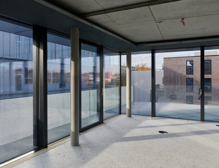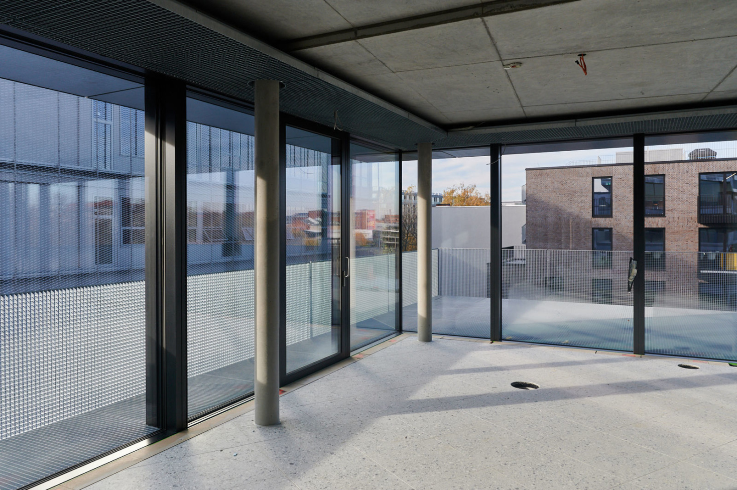 Die Hüllen sind bereits im Sommer gefallen. Die namensgebenden Terrassen sind fertig. Die letzten Fliesen werden verlegt. Die gläsernen Besprechungsräume sind auf allen Etagen installiert. Das Außengelände wird bereits gestaltet. In wenigen Wochen können die Mieter in Berlins neuestes Smart Office Building einziehen.