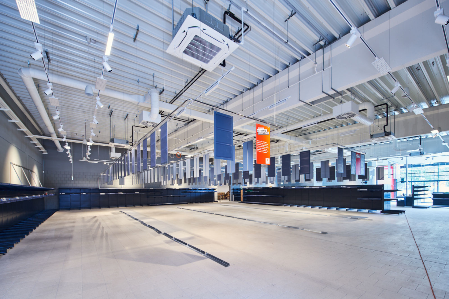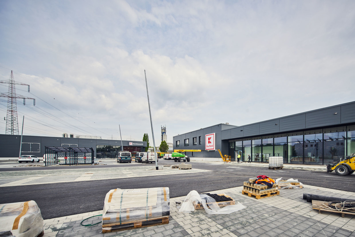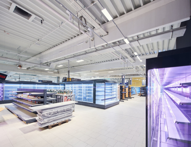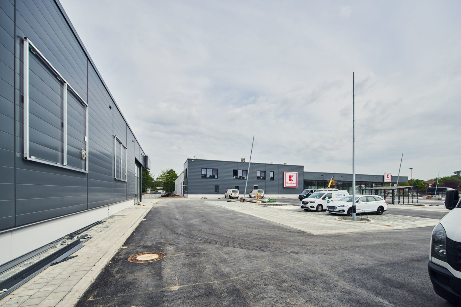 Die Architektur der beiden neuen Märkte orientiert sich an der aktuellen Kaufland-Baubeschreibung, mit einer dynamischen Eingangsspitze und einem Mix aus schlichten Alu-Steckfalz-Paneelen, blankem Sichtbeton und großflächigen Glaselementen.