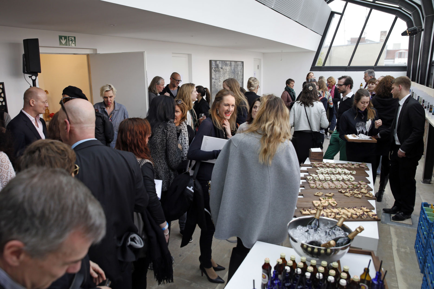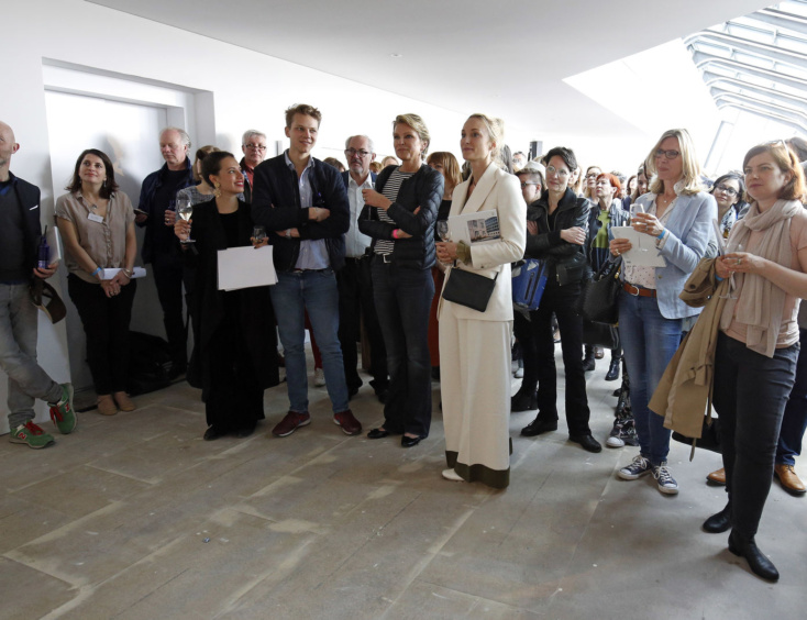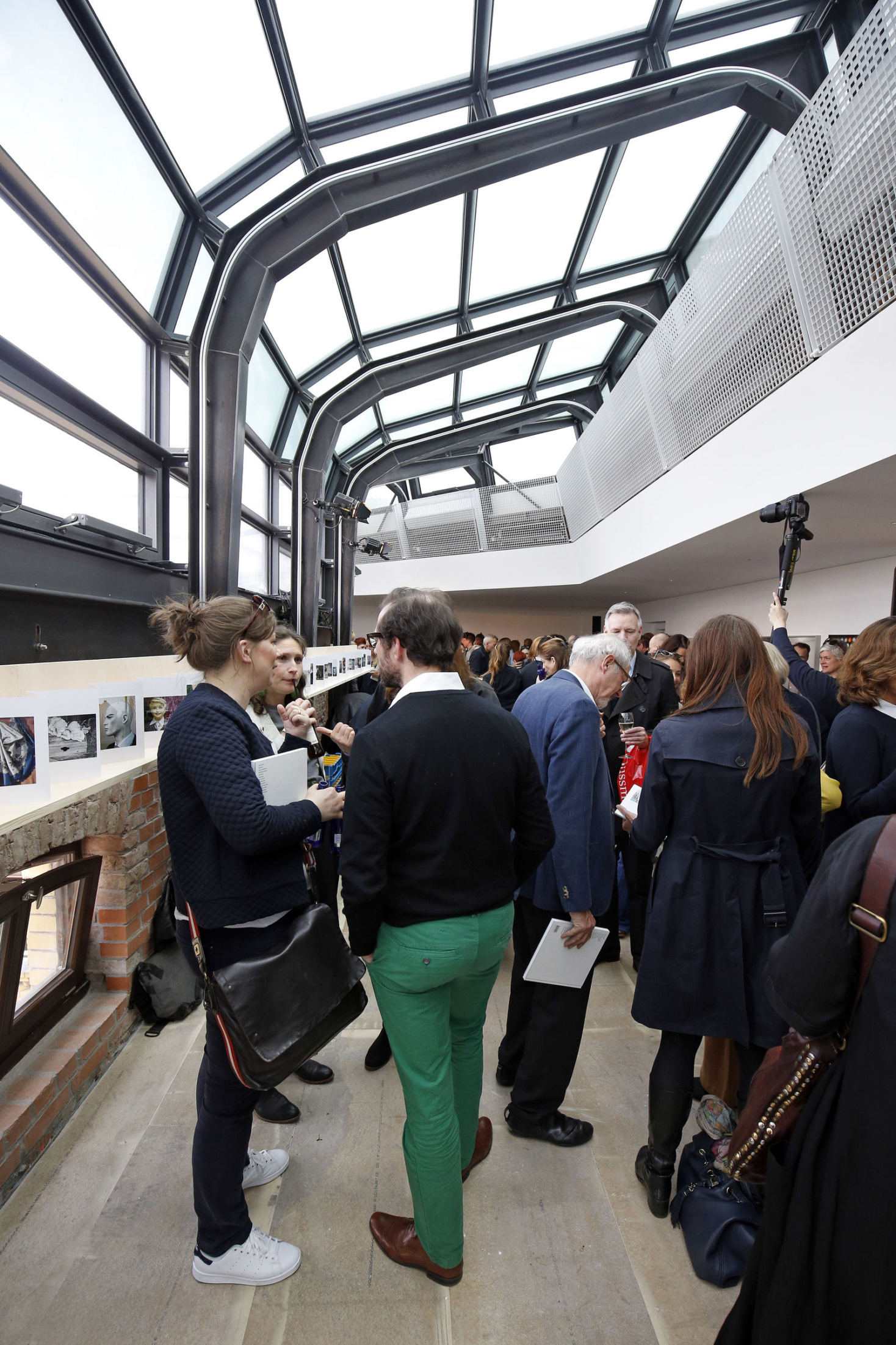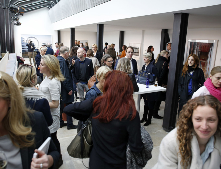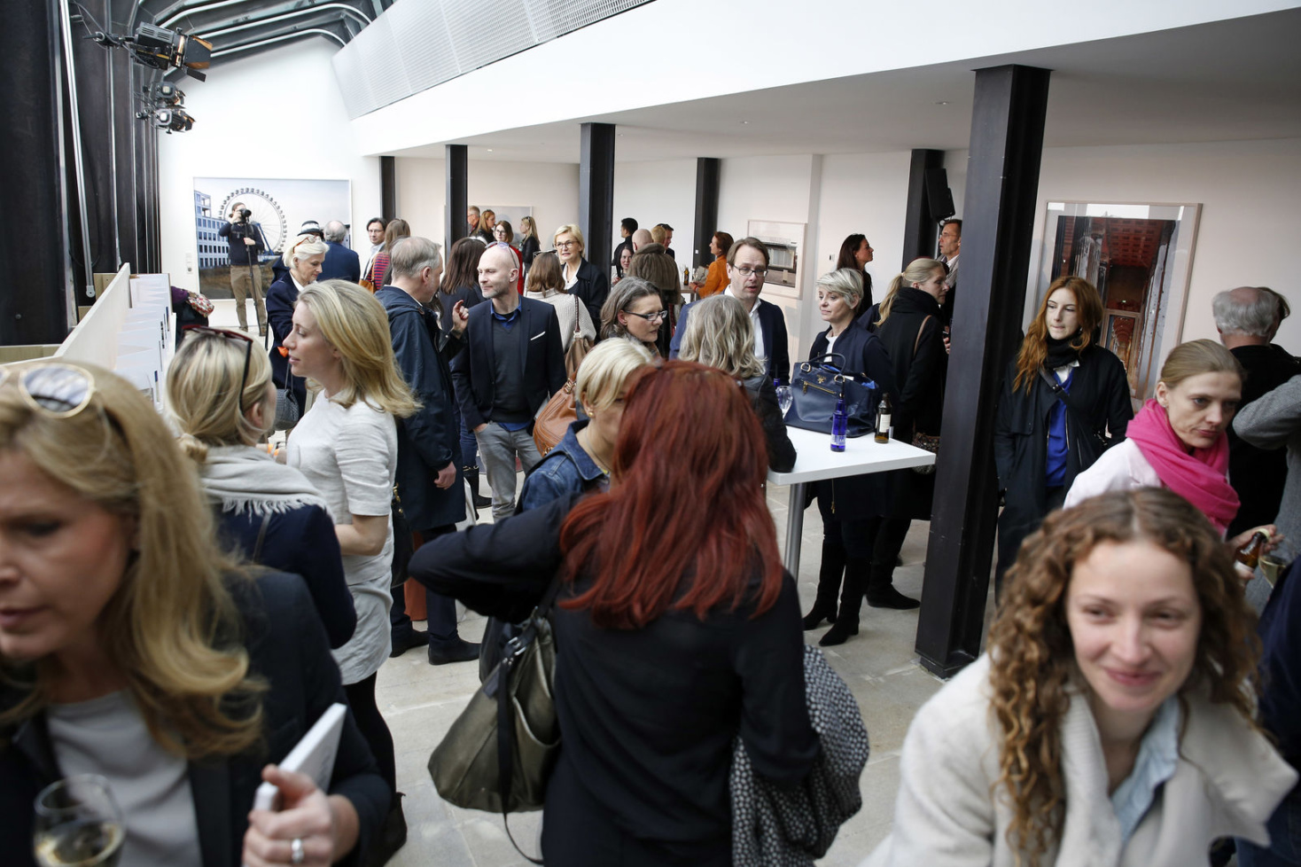 Nach dem Champagner-Empfang auf der Fotoausstellung Berlin Raum Radar der Kuratorin Nadine Barth im Dachgeschoss von NEUE WEST wurden die 200 Teilnehmer zu insgesamt 24 von den Kuratoren persönlich ausgewählten Kunstorten geführt.