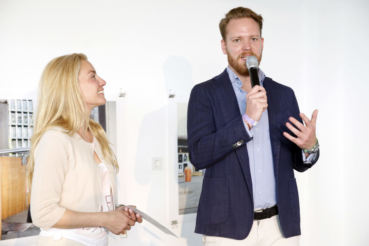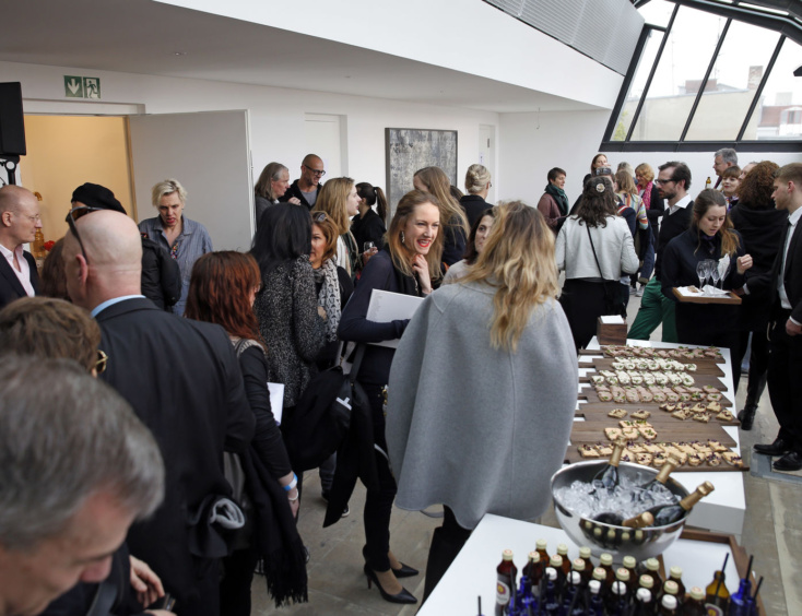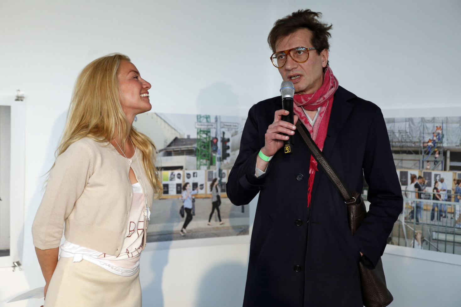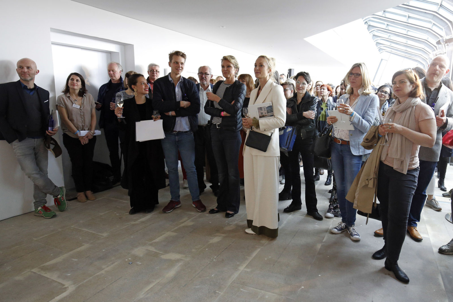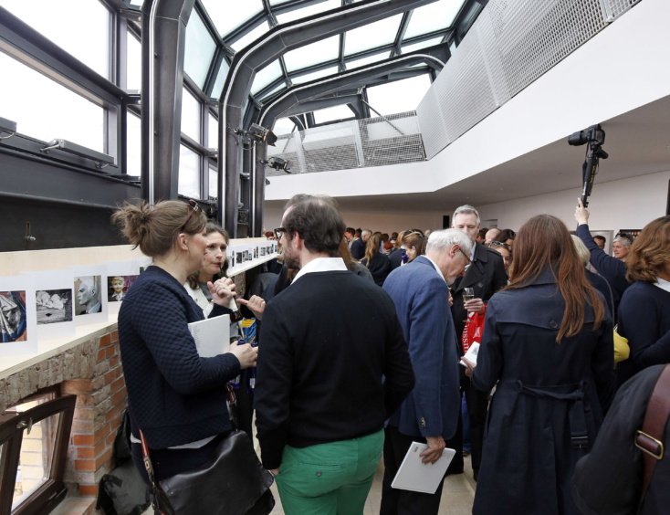 Nach dem Champagner-Empfang auf der Fotoausstellung Berlin Raum Radar der Kuratorin Nadine Barth im Dachgeschoss von NEUE WEST wurden die 200 Teilnehmer zu insgesamt 24 von den Kuratoren persönlich ausgewählten Kunstorten geführt.