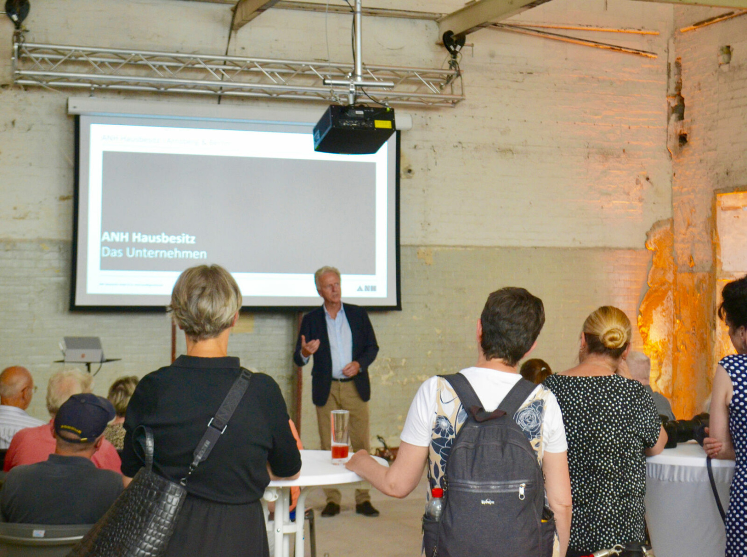 Am Dienstag, den 11.07.2023, richtete ANH auf Anfrage des Vereins für Heimatkunde zu Eberswalde e.V. den heimatkundlichen Sommerempfang im alten Eberswalder Schlachthof aus. Zusammen luden sie die Gemeinde zum historischen Ort in der Breite Strasse 144 ein, um über die Zukunft ins Gespräch zu kommen. Nach der Begrüßung durch Uwe Kröber, Geschäftsführer der ANH Hausbesitz, und Martin Hoeck, Vorsitzender des Vereins für Heimatkunde zu Eberswalde e.V., wurde das neue Projekt präsentiert mit anschließender Diskussion und Empfang bei Drinks und kleinen Häppchen.