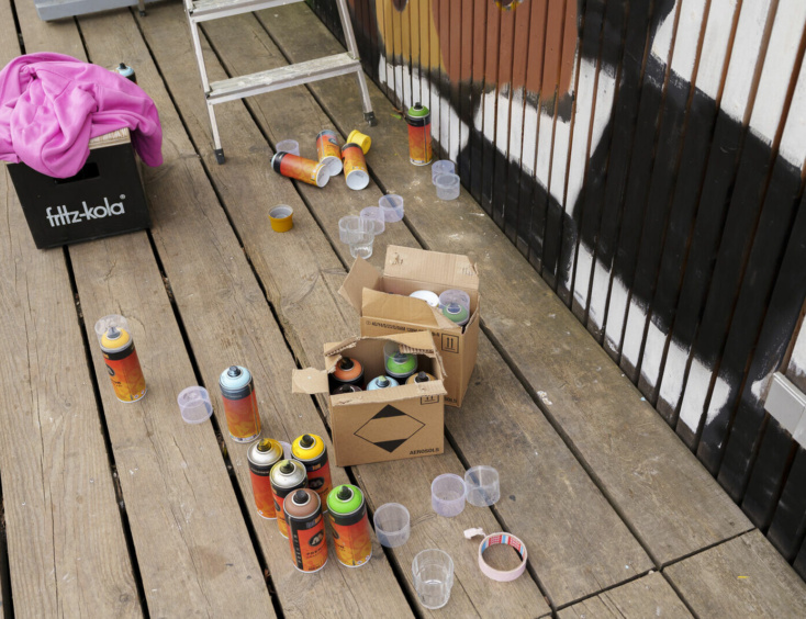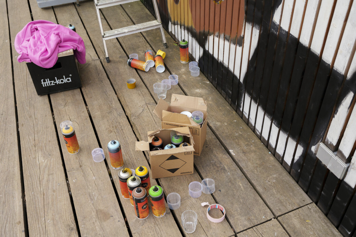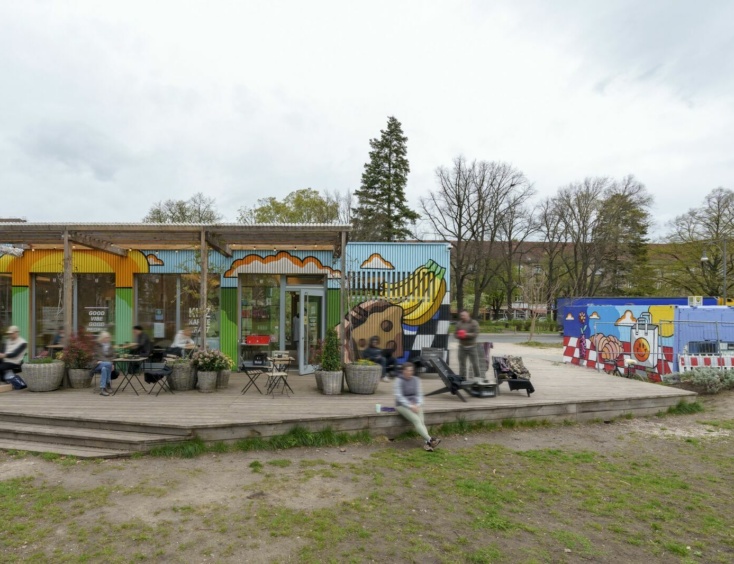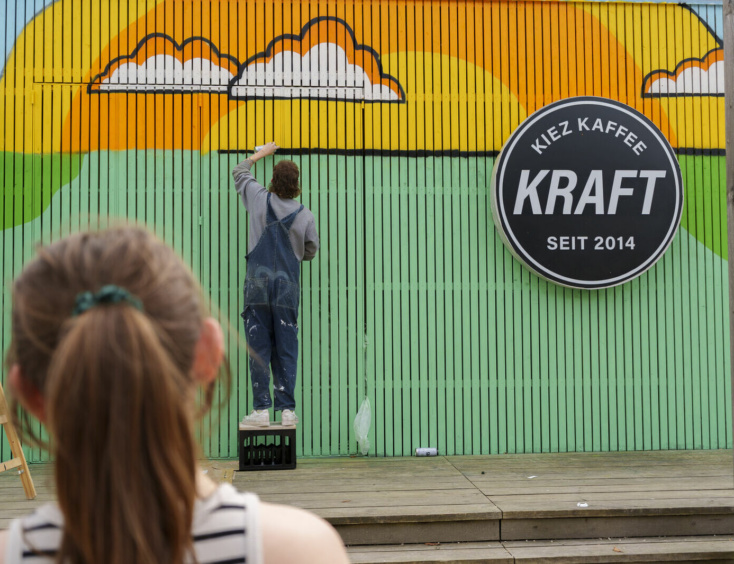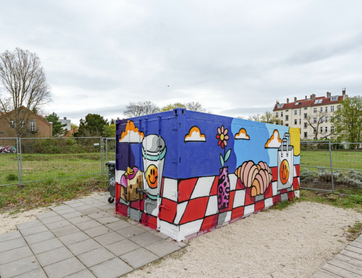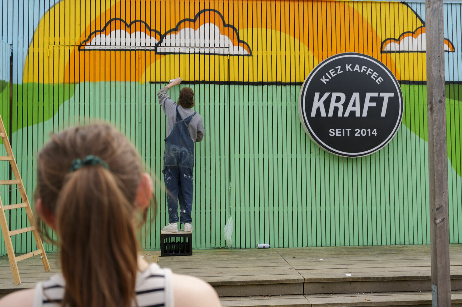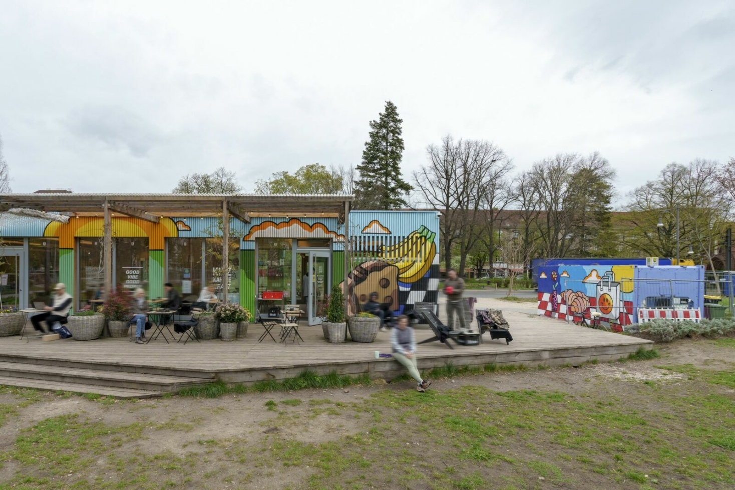 Unser Holzpavillon in Pankow erstrahlt in einem neuen Gewand. Der Prager Künstler Vinny Bonger hat den Pavillon Anfang April in ein wahres Kunstwerk verwandelt. Das Thema des Murals ist ein großes, farbenfrohes Picknick, das sich über den gesamten Pavillon und den beistehenden Container erstreckt. Inhaltlich nimmt das Thema Bezug auf unseren Mieter KIEZ KAFFEE KRAFT. Das Café versorgt seit Jahren sehr erfolgreich die Pankower Nachbarn mit vielen Kaffeeköstlichkeiten und ihrem beliebten Bananenbrot. Vinny Bonger und sein Team haben innerhalb einer Woche mit insgesamt 515 Spraydosen ein buntes und fröhliches Kunstwerk erschaffen. Vinny selber sagt dazu: “Life is made for beautiful moments. I am so grateful for these amazing opportunities to meet people and spread love, joy, and happiness through my artwork.” Da können wir uns nur anschließen!