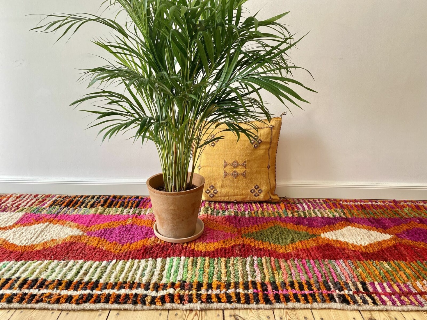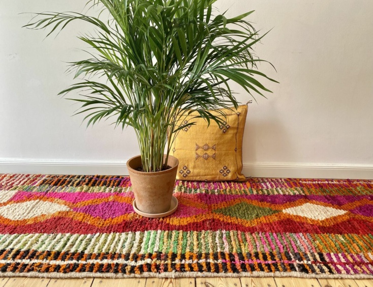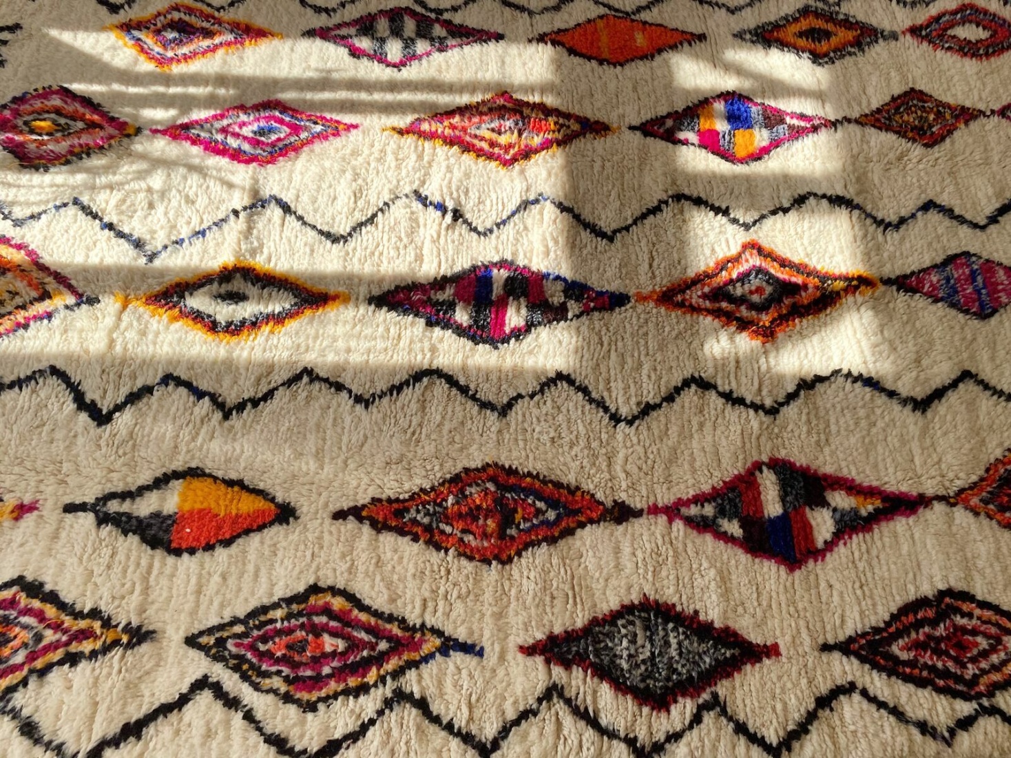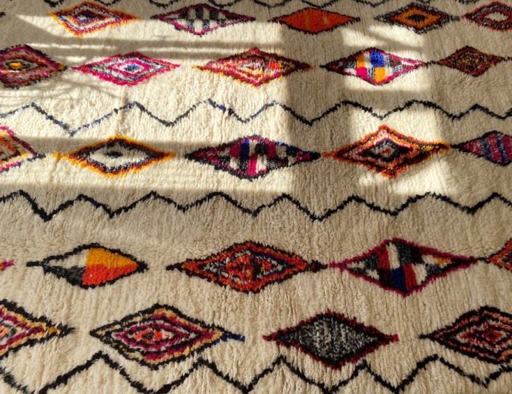 Die einzigartigen Kreationen zeigen ausdrucksstarke Farben, geometrische, aber stets mit Bedeutung aufgeladene Symbole und Muster und entstehen in Zusammenarbeit mit kleinen Familienunternehmen im marokkanischen Atlasgebirge, wo Teppiche schon seit Jahrtausenden traditionell gewebt werden.