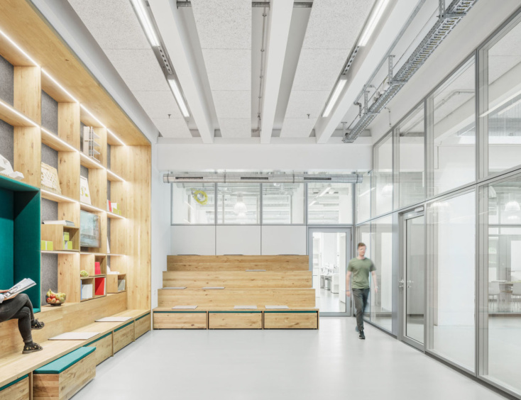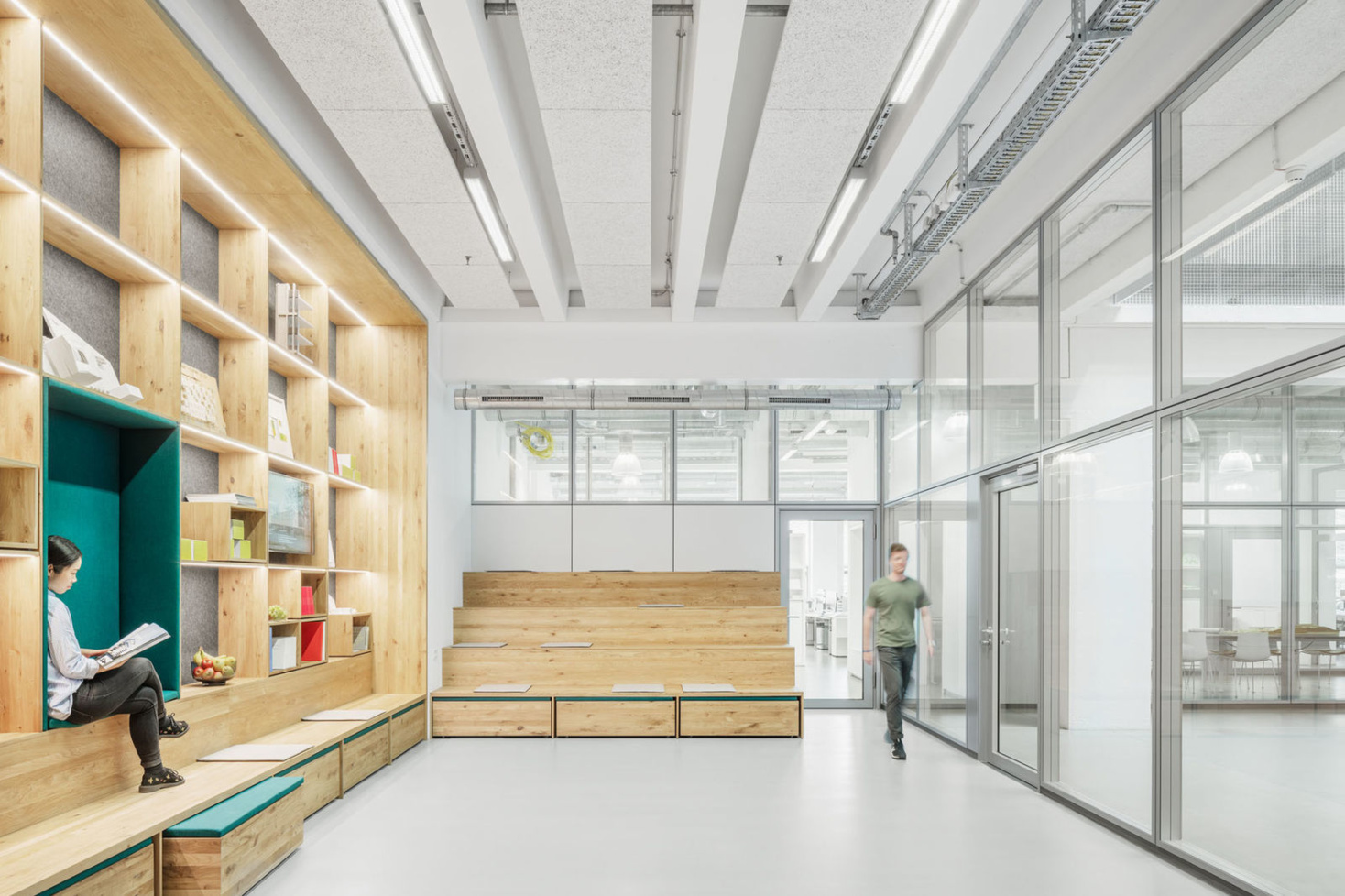 Den Aus- und Umbau übernahm das Architekturbüro selbst. Nach einem internen Wettbewerb der kreativen Köpfe wurde die beste Lösung umgesetzt, mit neuer Lounge und multifunktionalen Möbeln. Das Ergebnis lässt sich sehen. Mitarbeiter und Gäste werden in Zukunft in hellen und offenen Räumen arbeiten und Gespräche führen.