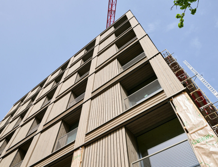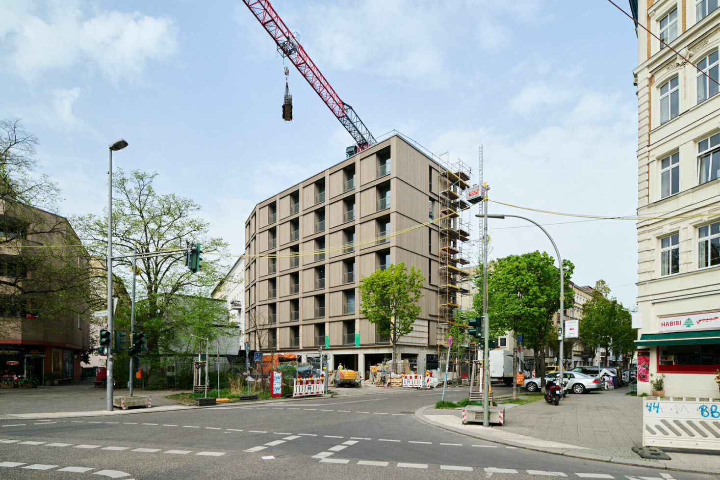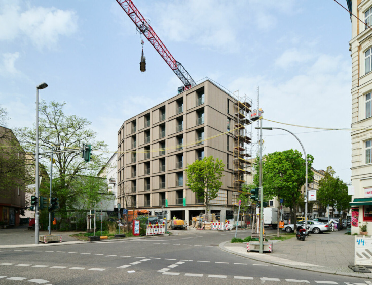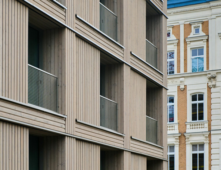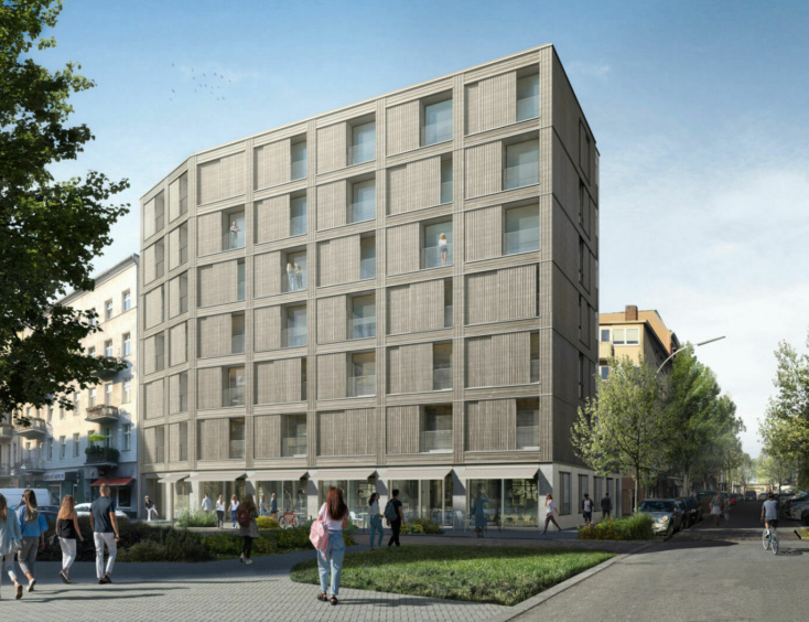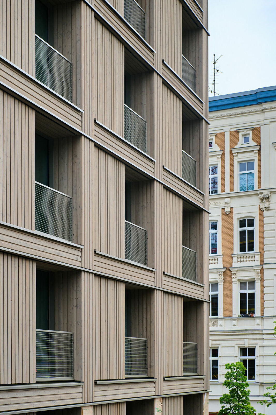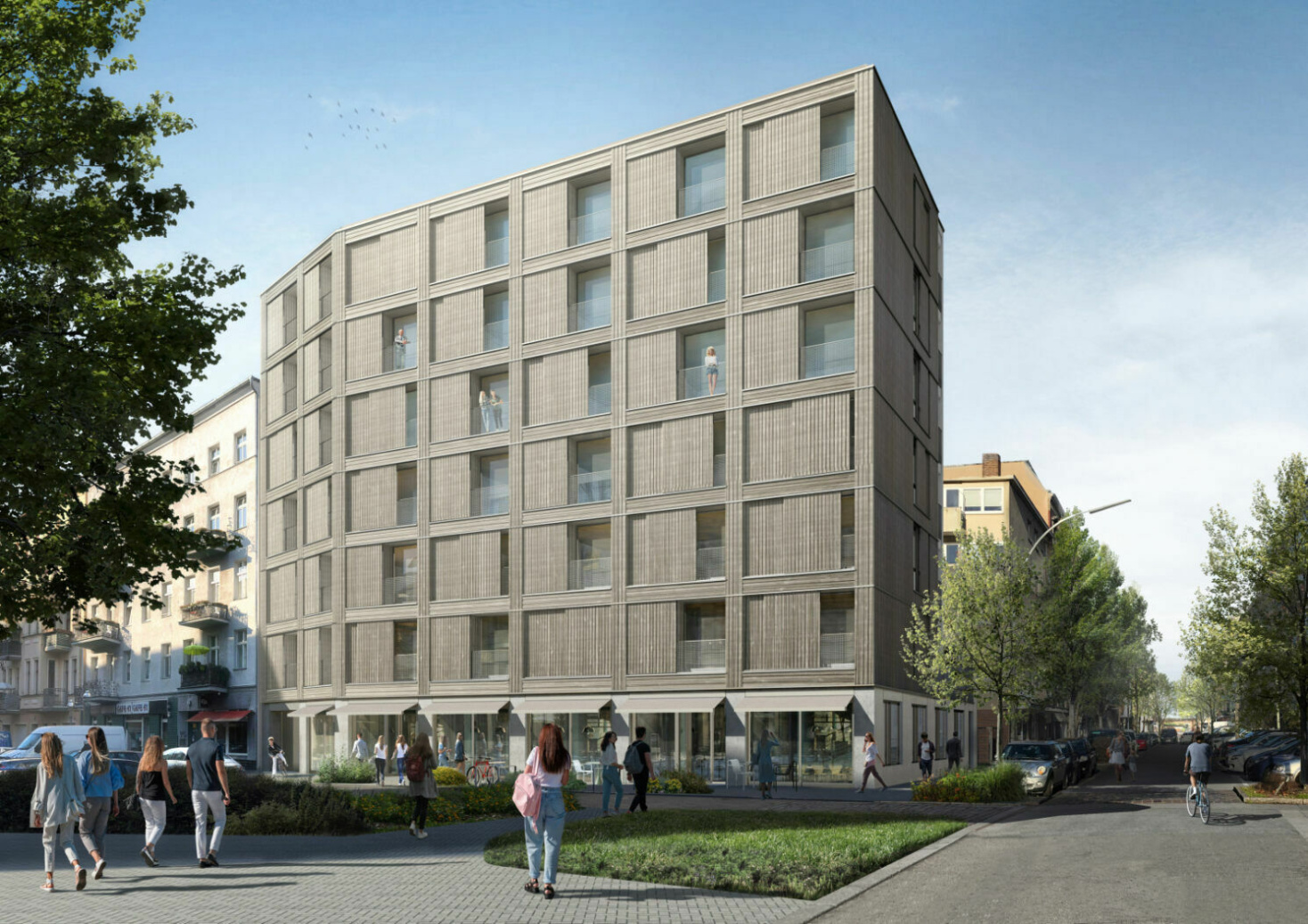 Der Hybridholzbau liegt mitten im quirligen Zentrum von Moabit. Einkaufsmöglichkeiten aller Art, Cafés, Bars, Restaurants und grüne Oasen sind fußläufig zu erreichen.
