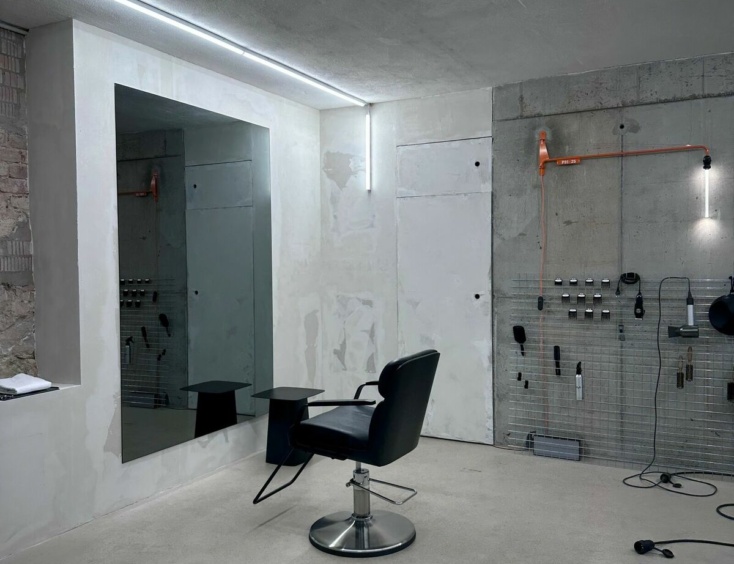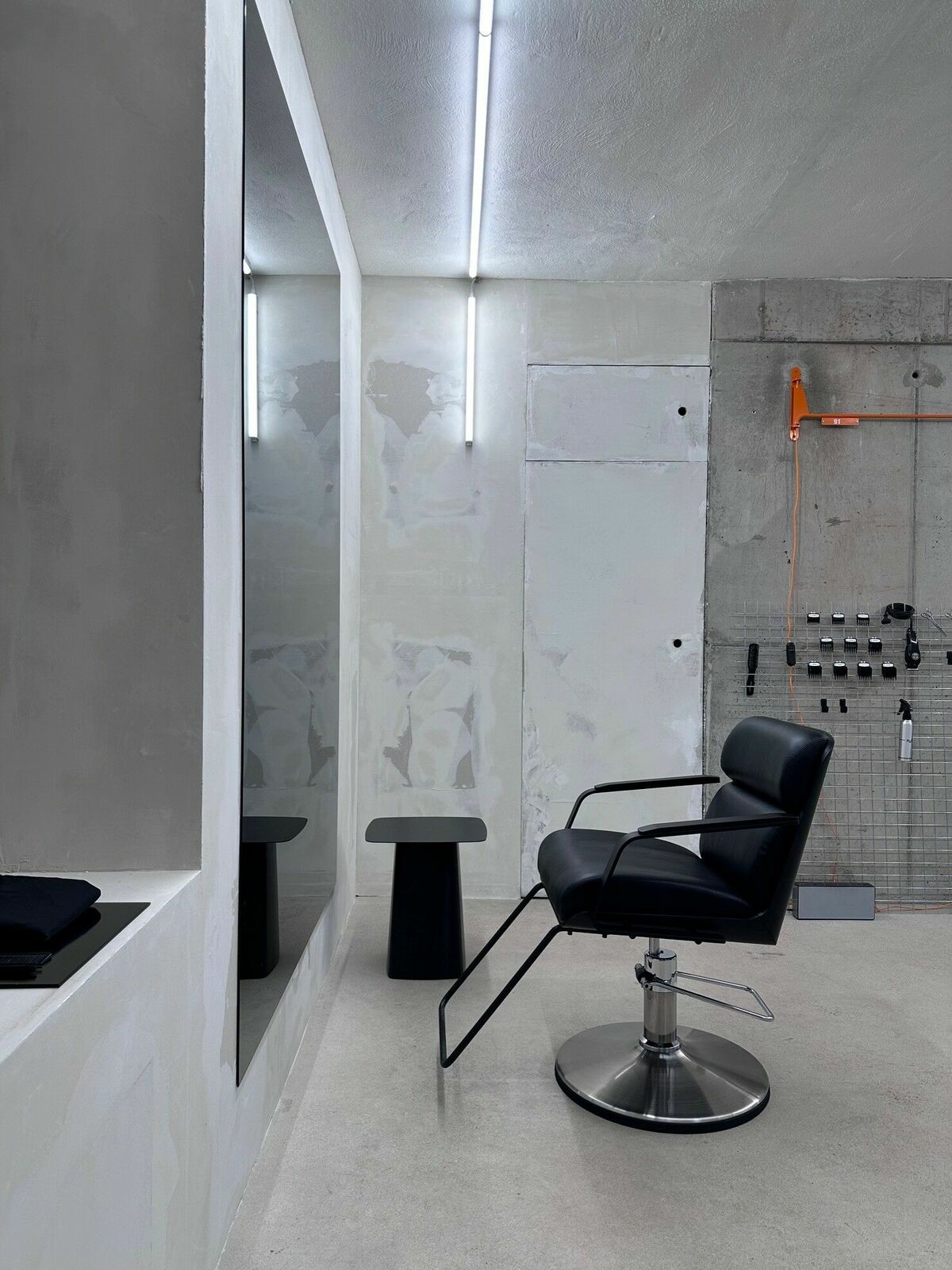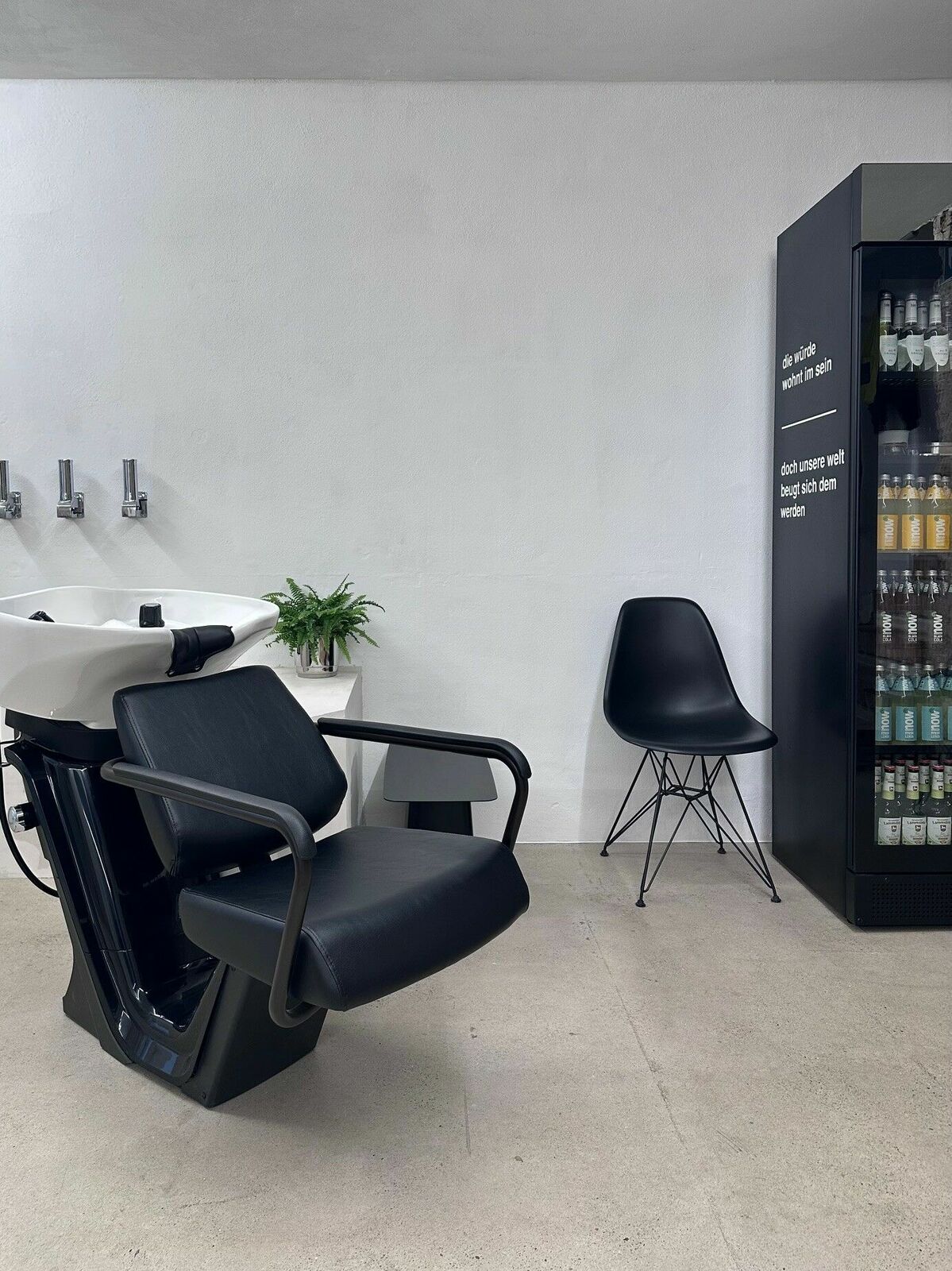 Gestalterisch habe ich diesen Dialog aufgenommen: Die grüne Hofwand wurde zum Teil meines Salons, der klare, reduzierte Look holt die Atmosphäre von außen nach innen – und umgekehrt. Die Sitzbank vorm Salon lädt zum Verweilen ein und macht /monkey hair berlin_ zu einem Ort, der offen ist für Begegnungen.