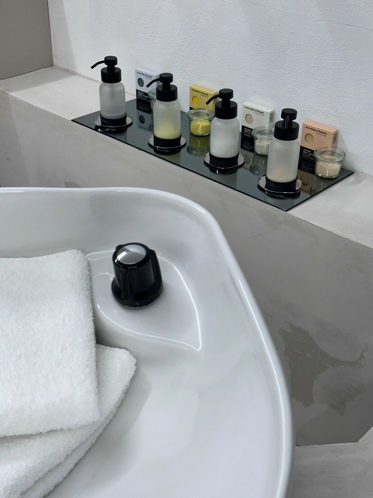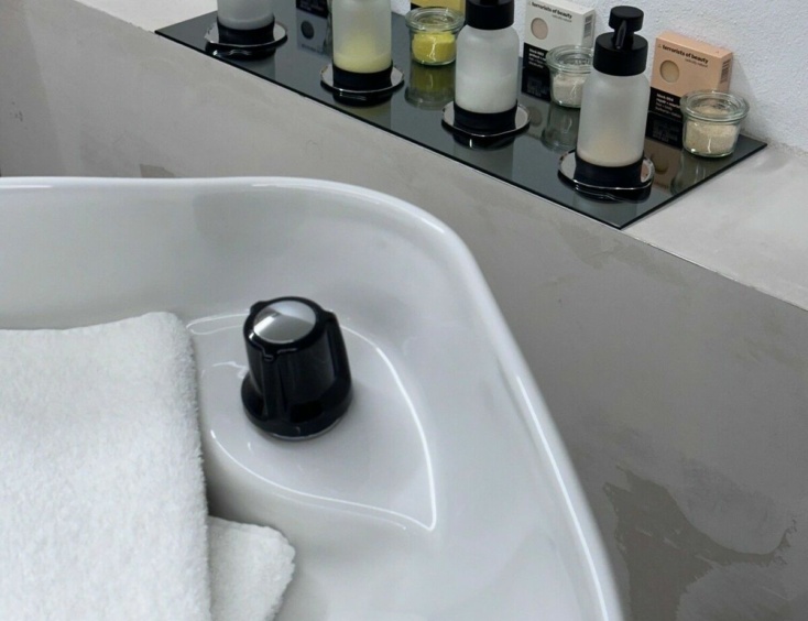Ich arbeite ausschließlich mit Haarseife, vermeide Müll, reduziere Wasserverbrauch und biete eine bewusste Alternative zum klassischen Salon. Die Zeichen „/“ = „abgrenzen“ und „_“ = „neu denken“ im Namen stehen für Richtungswechsel und Bodenhaftung – ein kleiner Hinweis auf den Wunsch, Dinge neu zu denken, ohne das Handwerk zu verurteilen.