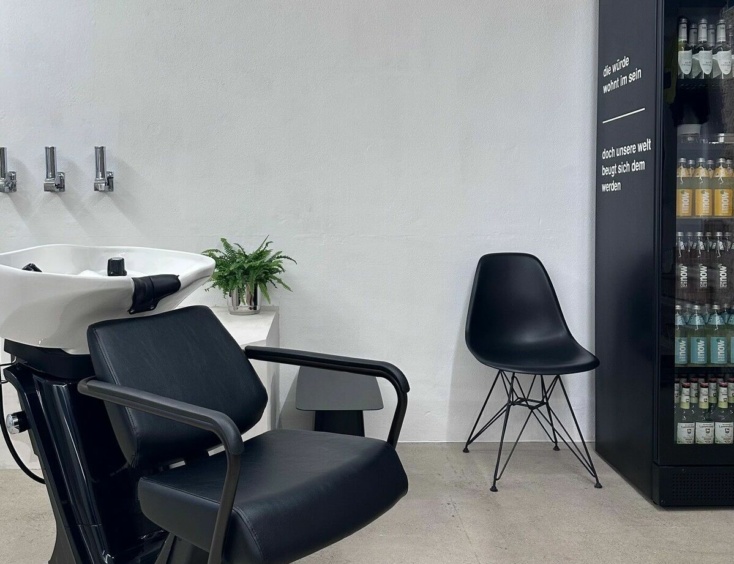 Zum Gallery Weekend durfte ich mit der Künstlerin barbara caveng zusammenarbeiten – sie hat den Salon für drei Tage zur Galerie gemacht. Das kam wunderbar an. Auch mit den anderen Gewerken im Innenhof sind schon Kooperationen in Planung – es ist eine Nachbarschaft, die wirklich lebt und sich gegenseitig inspiriert.